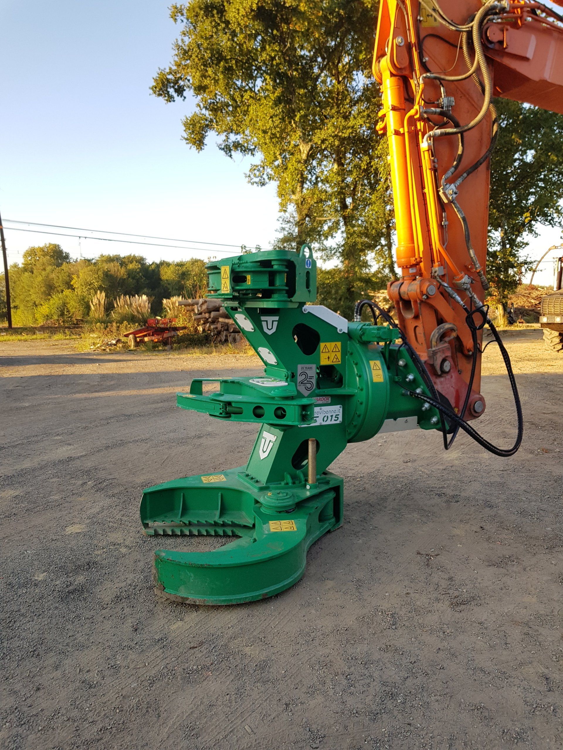 Montage d'un coupe branche hydraulique - Pelle sur chenille 18t Dossan
