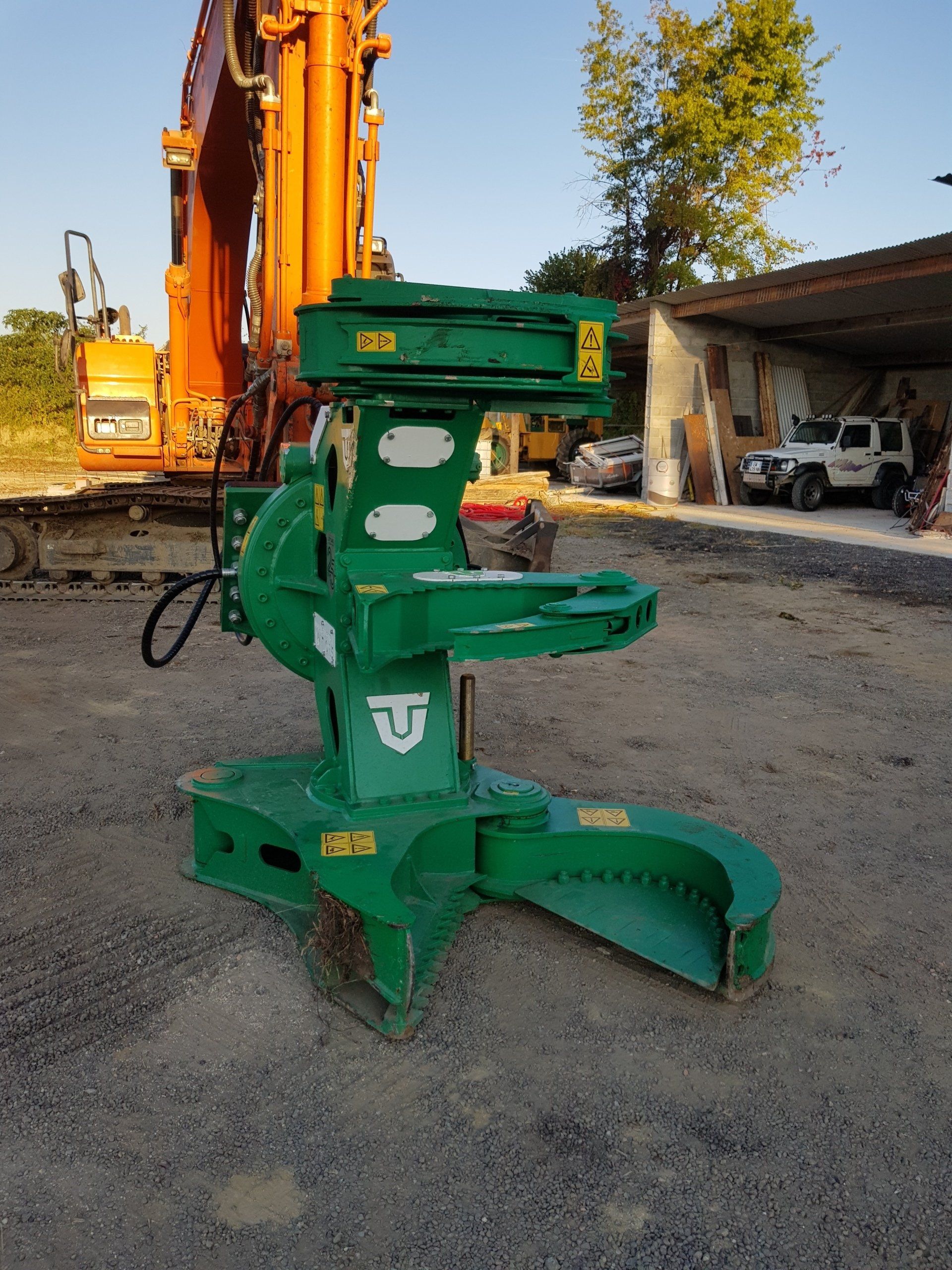 Montage d'un coupe branche hydraulique - Pelle sur chenille 18t Dossan